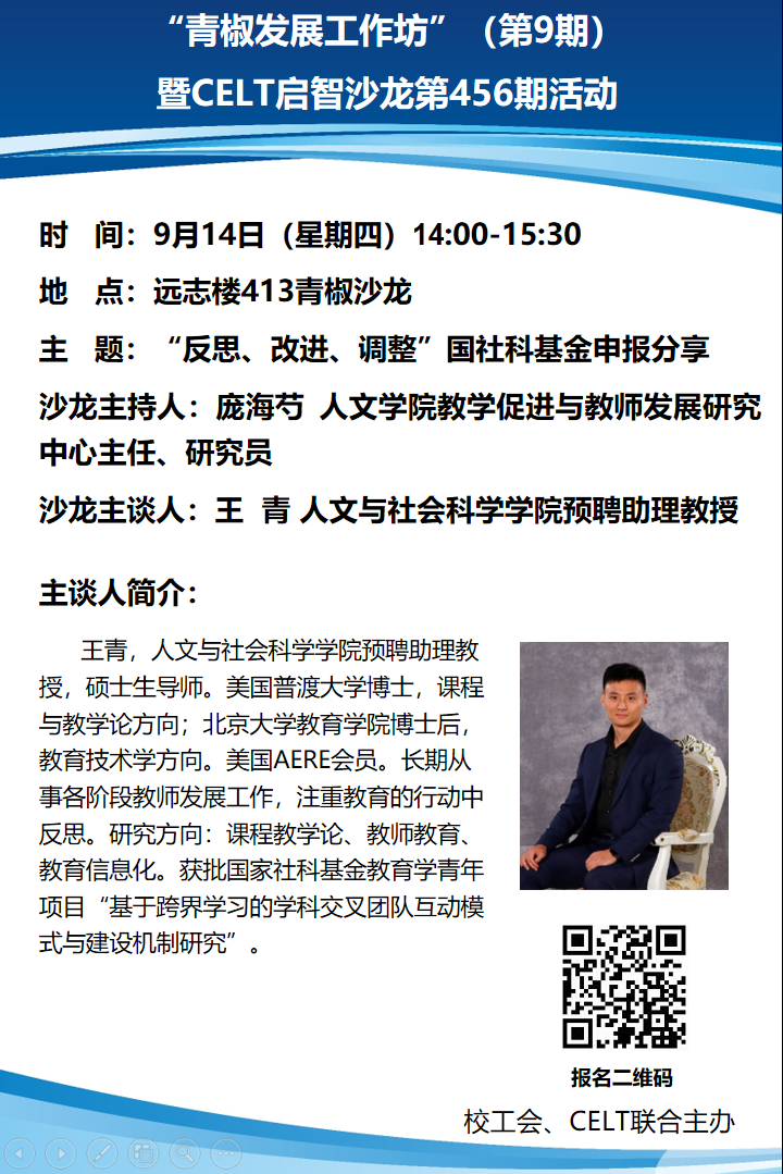 ”青椒发展工作坊”(第9期)暨CELT启智沙龙第456期活动