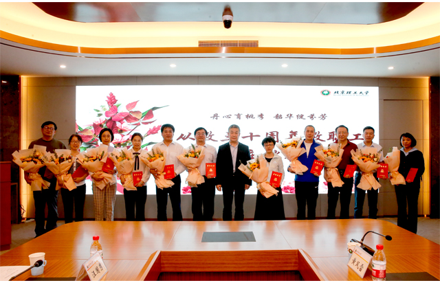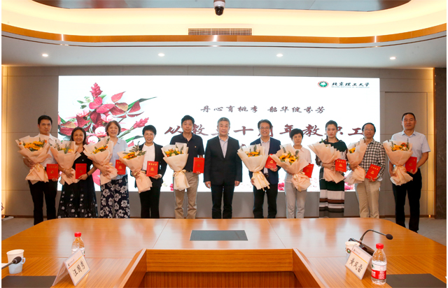 赵长禄代表学校党委,感谢老师们把一生中最精力充沛、最富于创造的青春时光留在北理工,把教书育人的思考、积淀和实践用在北理工,创造并践行了北理工精神,为党和国家培养了一大批卓越人才,为国家富强、民族昌盛创造了一系列重大科研成果。他希望老师们在今后的工作中,继续弘扬北理工精神,守初心、育时代新人,担使命、创一流业绩,续薪火、传红色基因。