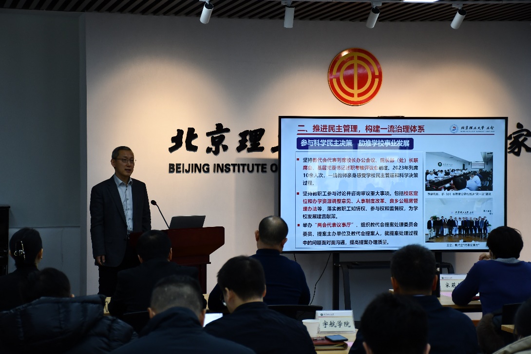 新的一年,学校各级工会要坚持以习近平新时代中国特色社会主义思想为指导,围绕中心、服务大局,履行工会基本职责,实现好、维护好、发展好教职工的根本利益,团结动员广大教职工踔厉奋发、埋头苦干,为书写高质量建设中国特色世界一流大学的北理工篇章贡献智慧与力量!
