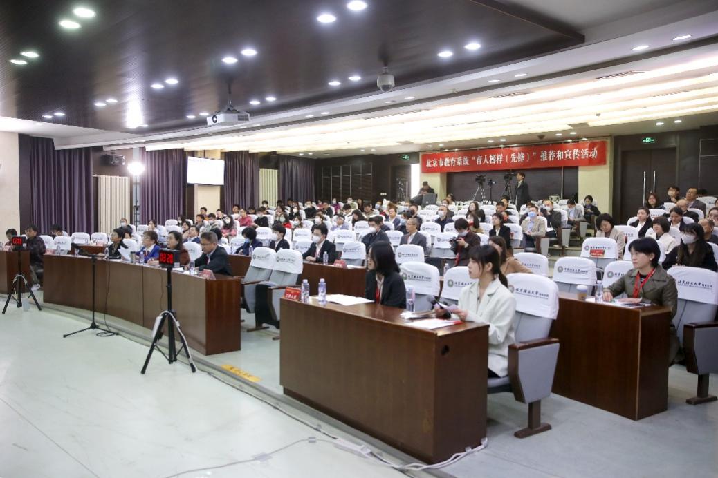 我校推荐的教书育人榜样候选人、北京市青年教学名师、青年长江学者武楠教授,进行现场汇报。学校党委副书记、副校长庞思平代表单位作事迹展示和推荐。