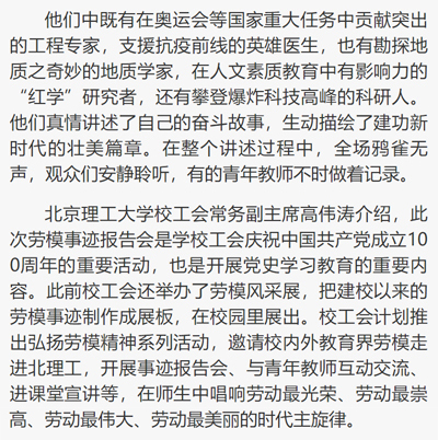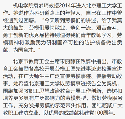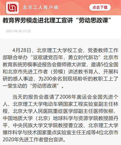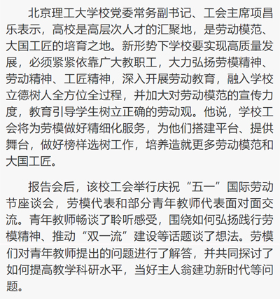 劳动午报:教育界劳模走进北理工宣讲“劳动思政课”